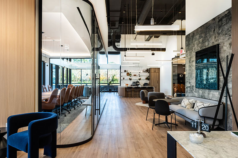 This unique project consisted of modifying the existing curtain wall system to incorporate a new entrance with specially designed architectural elements. The project also included a complete lobby renovation, outdoor amenities, and a 20,000 s.f. white box. The architect and owner were able to incorporate many contemporary design elements into these areas.